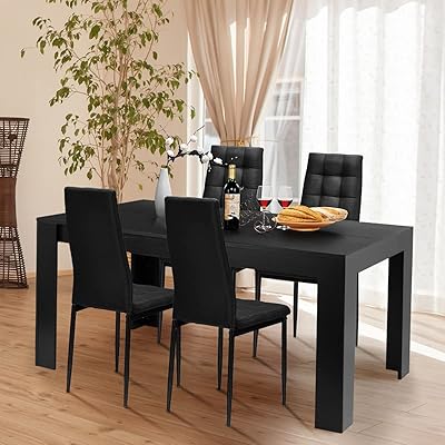 Buy Giantex 5 Piece Dining Table Set Wood Rectangular Table With 4 Upholstered Chairs Set Modern Kitchen Table Set Black Dining Room Table Set Home Kitchen Dinette Dining Room Restaurant Furniture Online from images-na.ssl-images-amazon.com With contrasting white veins, the stone offers an unexpected element. Dervish star dining chair, black powder steel base, white latherette by sohoconcept. Start here and create an ecosystem for comfortable discussion and lively give and takes. Although a chair with arms may be the first item that comes to mind, armless chairs offer a sleek and modern look that does not compromise on quality. 2xhome mid century modern dining side chair with black wood legs, white. A great choice for your small space dining needs. Get 5% in rewards with club o! With solid wood tables, and beautiful, upholstered dining room chairs, we'll create the type of inviting environment that you want.