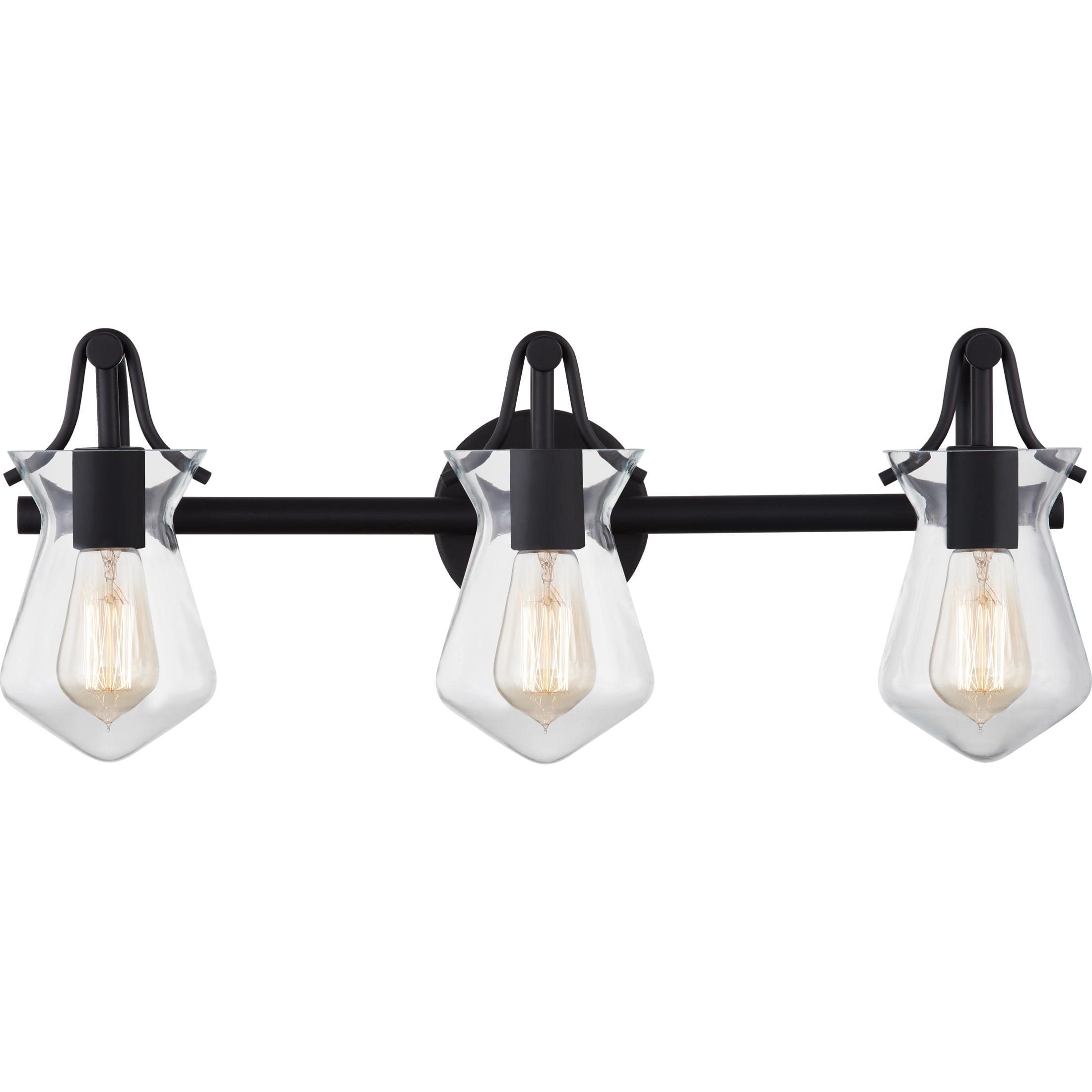 Canarm lochlan 4 light vanity light with clear glass matte black finish easy connect included, golden lighting orwell 4 875 in 2 light matte black golden lighting 6070 ba1 blk blk tribeca bathroom vanity light matte black. Industrial matte black finish bathroom vanity lights glass sconces design: Try installing this vanity above your master suite. Patriot lighting® connell matte black vanity light. Spec sheet description the milla vanity light features clear glass shades and a matte black metal frame.